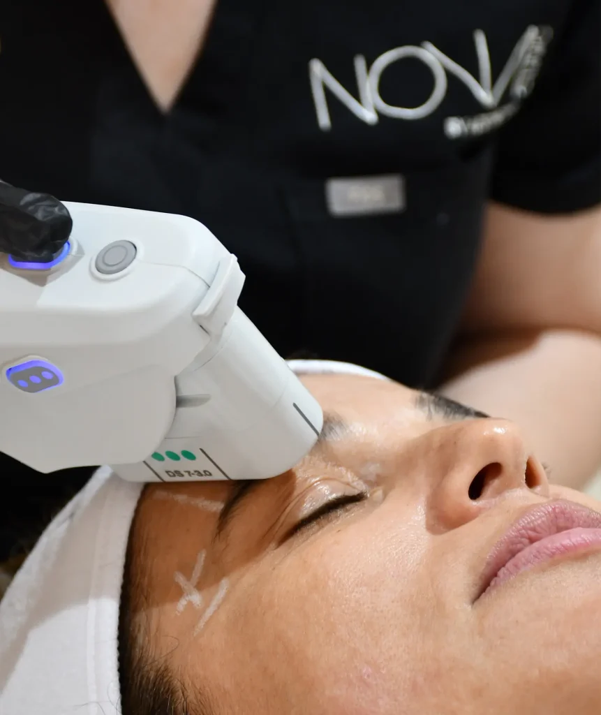 Most patients experience a mild warming or tingling sensation as the ultrasound energy penetrates the skin. The discomfort is temporary and means the collagen stimulation process is working. A numbing cream can be applied if needed, ensuring a comfortable treatment experience at The Nova Clinic.